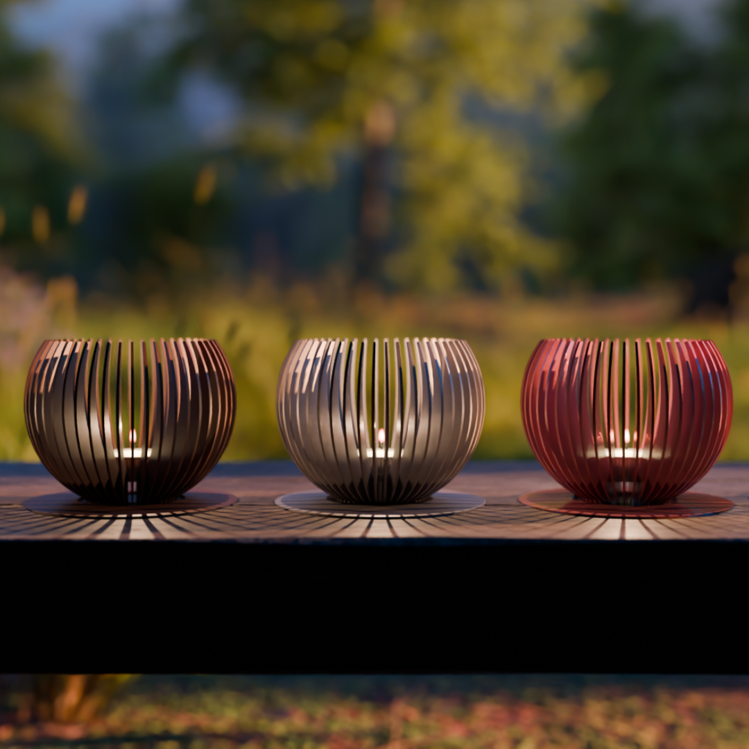 Det begyndte med ild – men vi opdagede hurtigt, at vores skulpturer havde potentiale til mere. Ved at integrere LED og stearinlys kunne vi bringe den samme stemning og æstetik med ind i hjemmet. Pludselig blev vores udendørs design til indendørs kunst. En bæredygtig, fleksibel og sikker løsning, der skaber ro, varme og blikfang i ethvert rum.